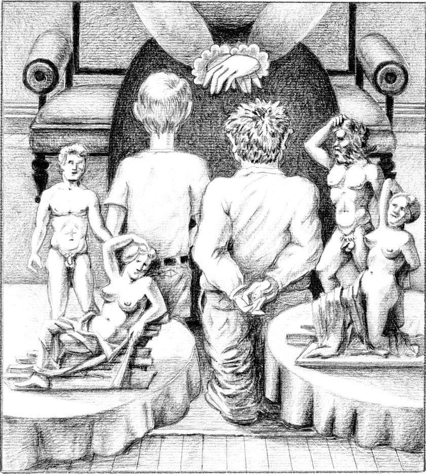 During the morning we would draw, paint, or model in clay. Then we would eat lunch. All of us brought lunches from home. When it was time to eat, we would gather together in groups of friends. Periodically, Miss Louisa took us aside, one at a time, and reminded us that Matthew was not a happy boy, that he had no father, and that we should share our lunches with him because he didn’t have any money. Once, I traded sandwiches with him. The sandwich I gave him was tuna fish, and I was fond of tuna fish sandwiches. The sandwich he gave me was lard, just lard. With the first bite I decided that I’d been duped. I looked at him. He was wolfing down the tuna fish sandwich, but he paused to smile at me. It was not a pure smile. It was more like a sneer.