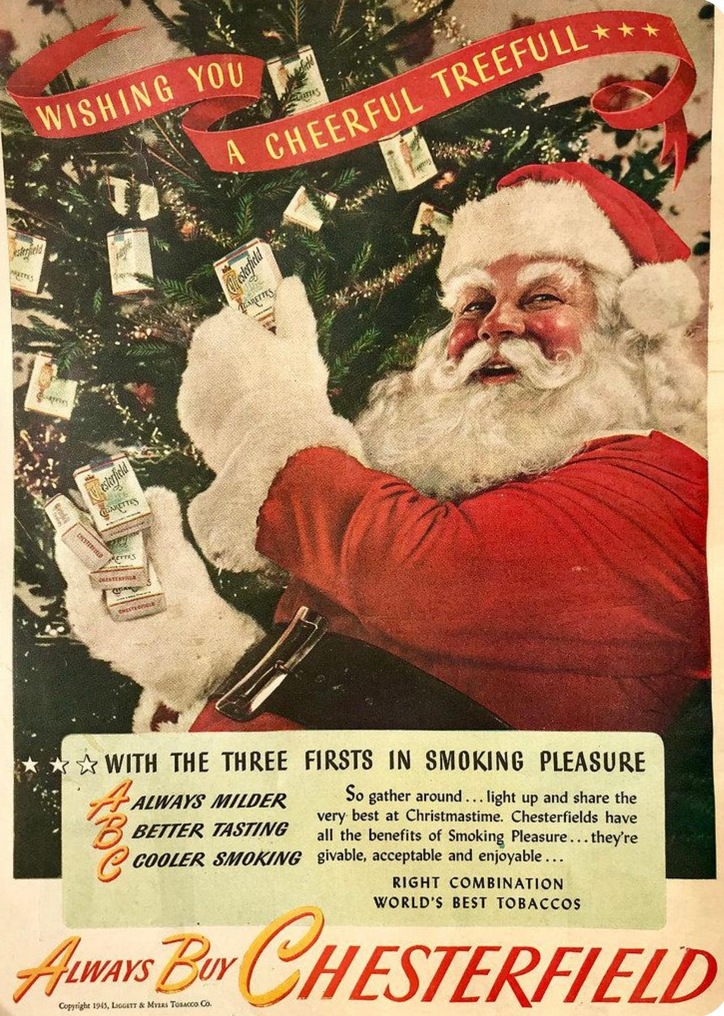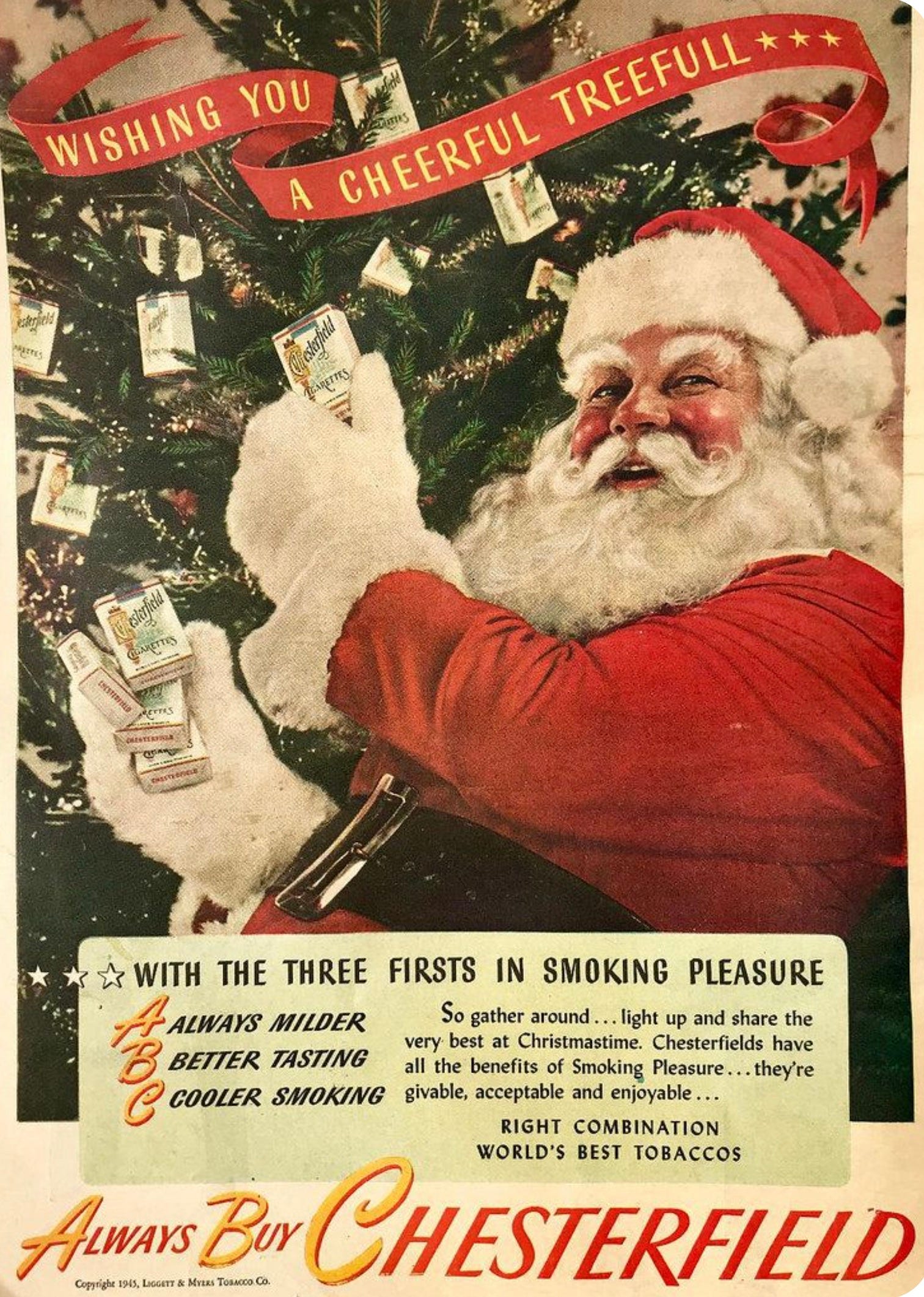 And here is the Liggett & Myers advertisement for Chesterfield cigarettes: