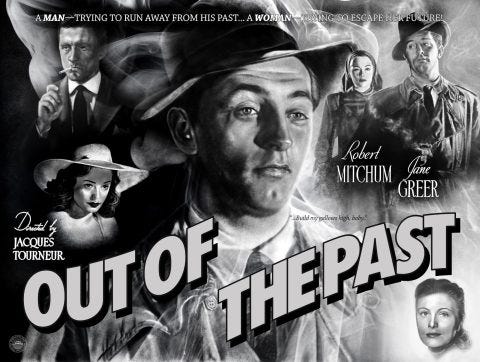 I hope you will not object to my abandoning for a moment my objectivity (or my pretense of objectivity) to say that in my opinion, for what it’s worth, the best movie in the film noir genre is Out of the Past.